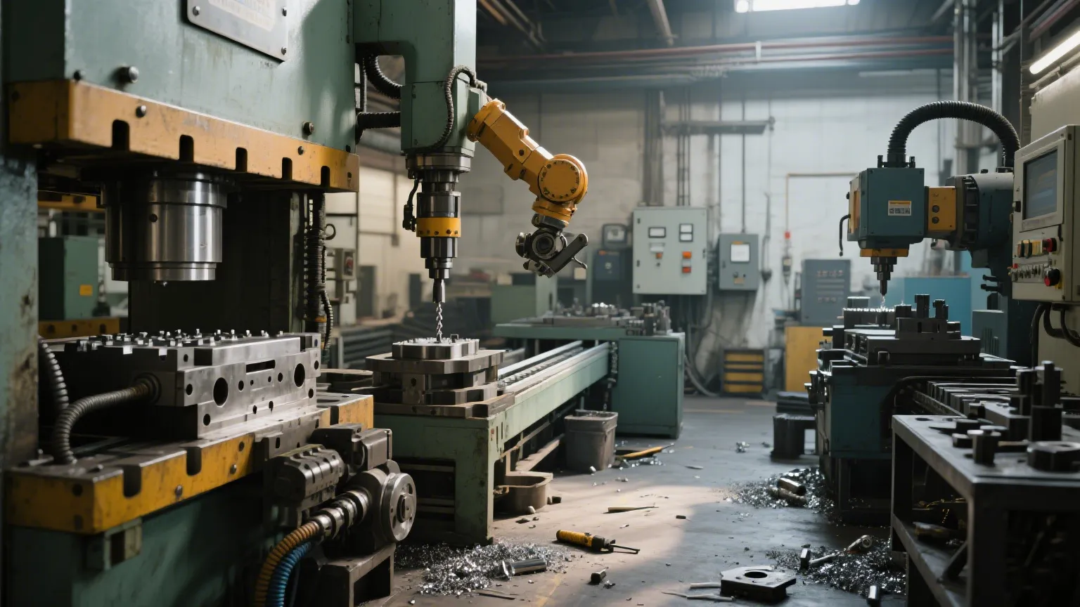 في الأسطوانة الهيدروليكية للرقص الآلي من إعدادات تصنيع CNC ، يضع ويؤمن قطع الغيار. مبرمجة لتحريك الرقصات في مكان للحفر ، الطحن ، وأكثر من ذلك ، فإنه يبقيها مقفلة بإحكام ، مما يجعل التصنيع أكثر دقة وكفاءة.